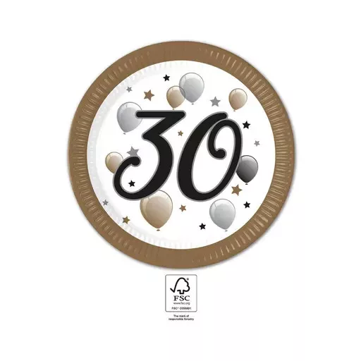 La mulți ani Milestone Farfurii de hârtie Happy Birthday 30, set 8 buc, 23 cm FSC