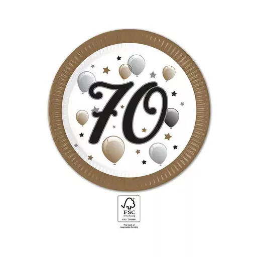 La mulți ani Milestone Happy Birthday 70 farfurii de hârtie 8 buc. 23 cm FSC
