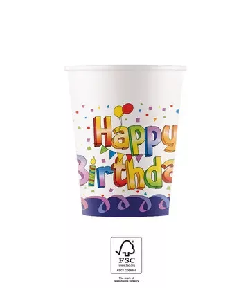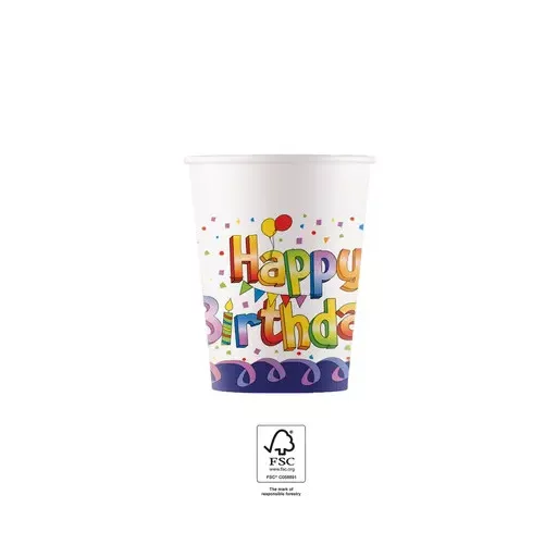 La mulți ani Multicolor Pahar din hârtie Happy Birthday set de 8 bucăți 200 ml FSC