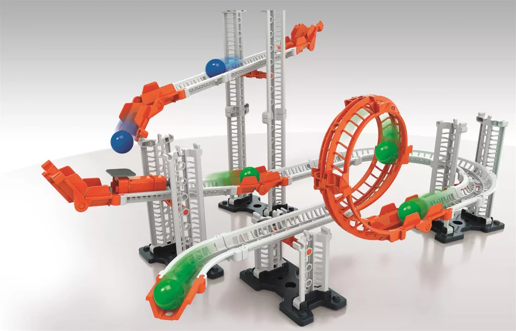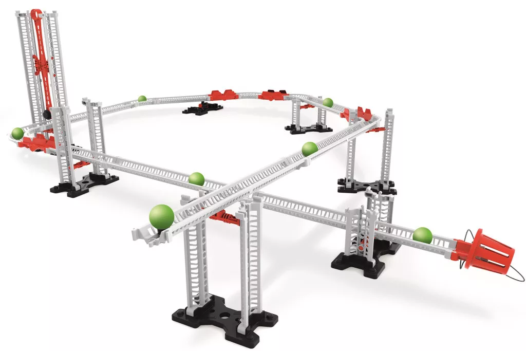 - construiește-ți sistemul de piste cu provocarea de a crea o cursă în care bilele în mișcare pun în mișcare diferite elemente