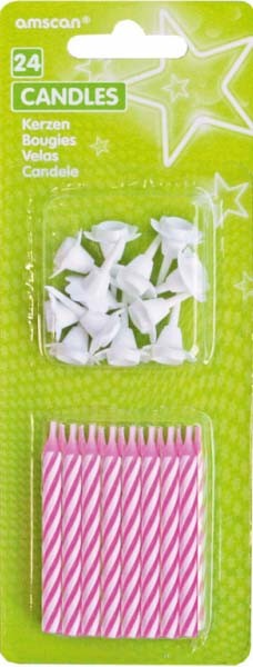 Colorat Lumânări spiralate roz pentru tort, set de 24