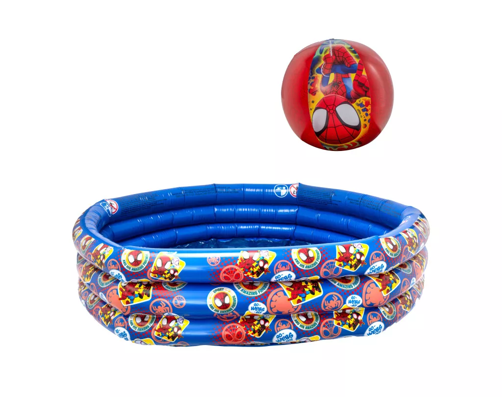 Omul Păianjen Spidey Friends Set de piscină și minge de plajă cu 3 inele pentru copii