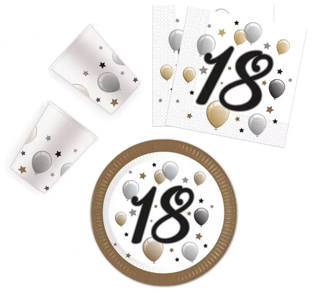 La mulți ani Milestone Set de petrecere La mulți ani 18 cu 36 de bucăți și farfurie de 23 cm