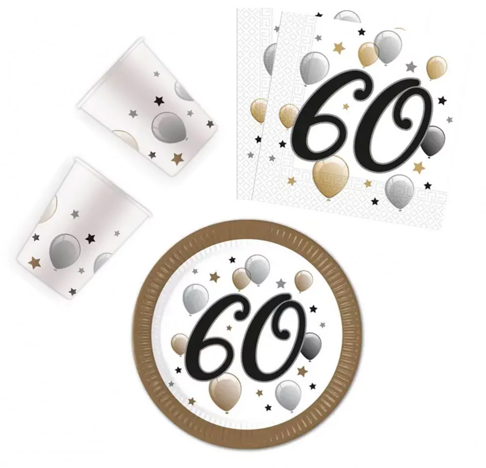 La mulți ani Milestone Set de petrecere Happy Birthday 60 cu 36 de piese și farfurii de 23 cm