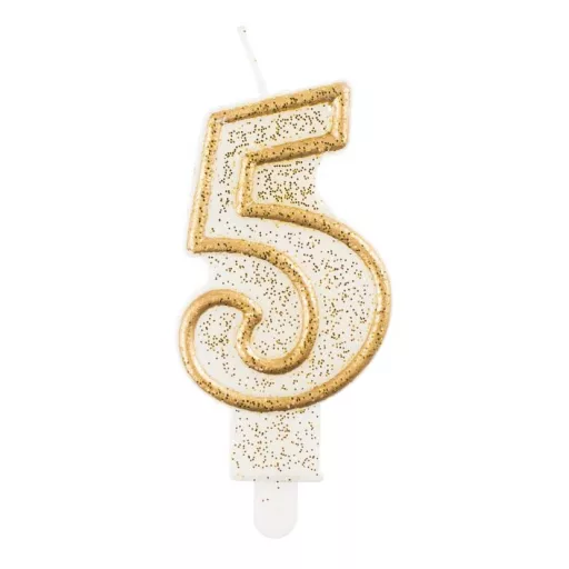 Number, Numere Lumânare aniversară cu sclipici auriu numărul 5, lumânare pentru tort