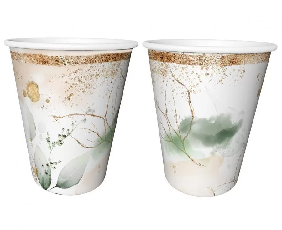 Party Feelings Pahar de hârtie cu frunze set de 6 buc 240 ml