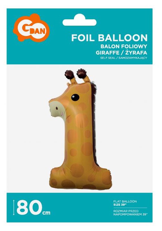 Numere Giraffe Balon din folie Giraffe Numărul 1, 80 cm