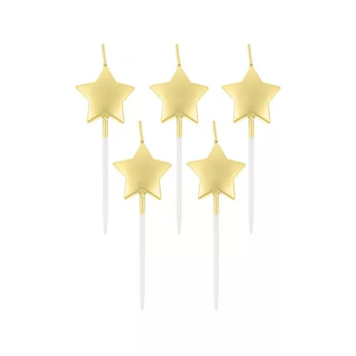 Star, Stea Lumânare pentru tort aurie, set de lumânări 5 bucăți