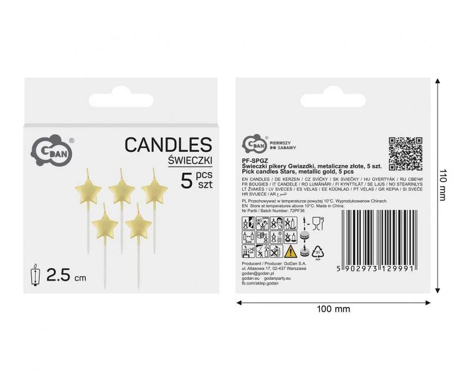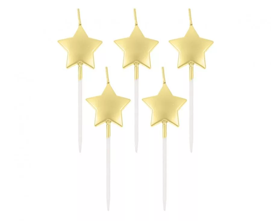 Stea Metallic Gold Lumânare pentru tort aurie, set de lumânări 5 bucăți Stea Metallic Gold Lumânare pentru tort aurie, set de lumânări 5 bucăți