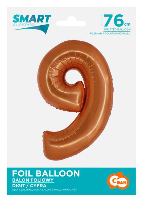 Number, Numere Baloane din folie cu numărul 9 cupru 76 cm
