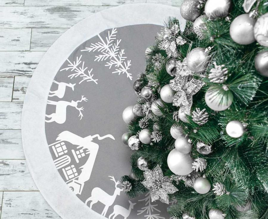 Crăciun Reindeer Fustă de brad argintie, suport Crăciun Reindeer Fustă de brad argintie, suport Crăciun Reindeer Fustă de brad argintie, suport
