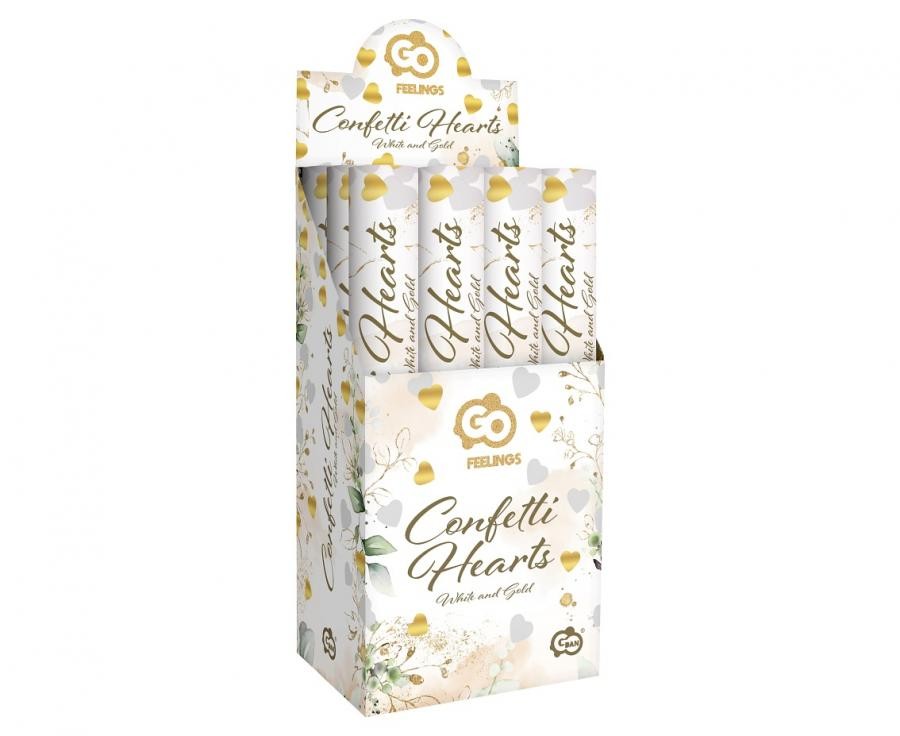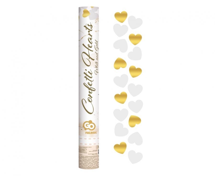 Nuntă Gold White Hearts, Lansator de Confetti în formă de inimă, 40 cm