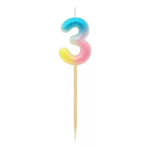 Numere Pastel Ombre Lumânare colorată cu numărul 3, lumânare aniversară