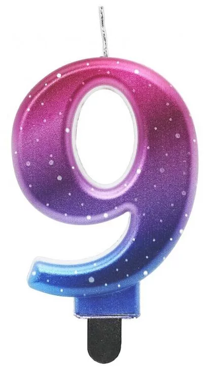 Numere Night Sky Metallic Lumânare decorativă colorată cifră 9