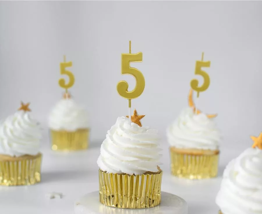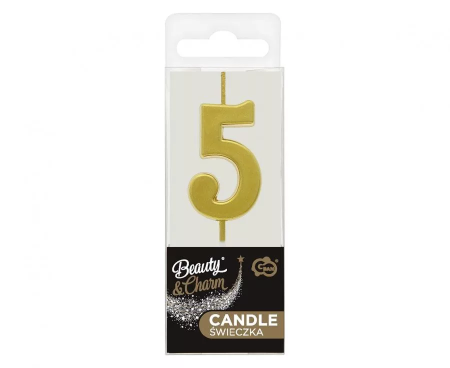 Numere Gold Metallic, Lumânare cu cifra de aur, lumânare pentru tort numărul 5