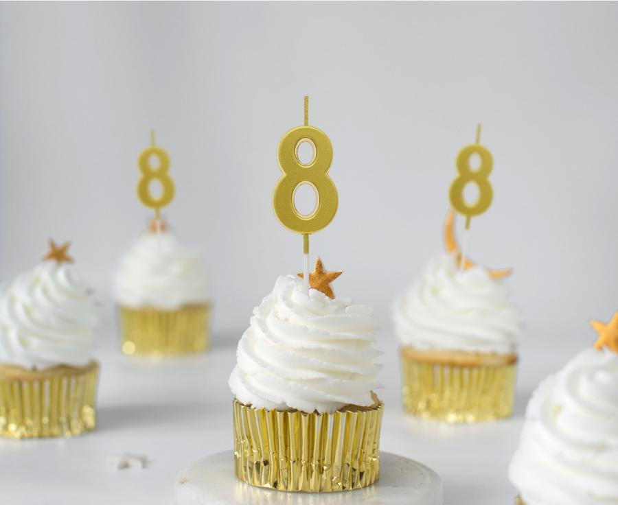 Number, Numere Gold Metallic, lumânare cu număr, lumânare pentru tort 8.
