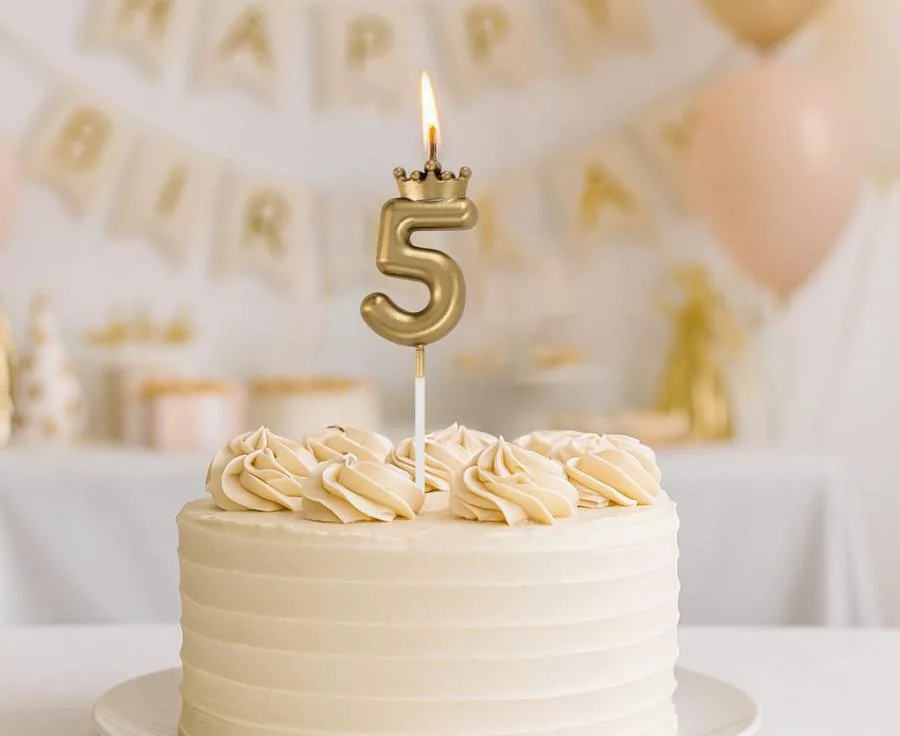 Number, Numere Lumânare cifră 5 aurie, lumânare de tort