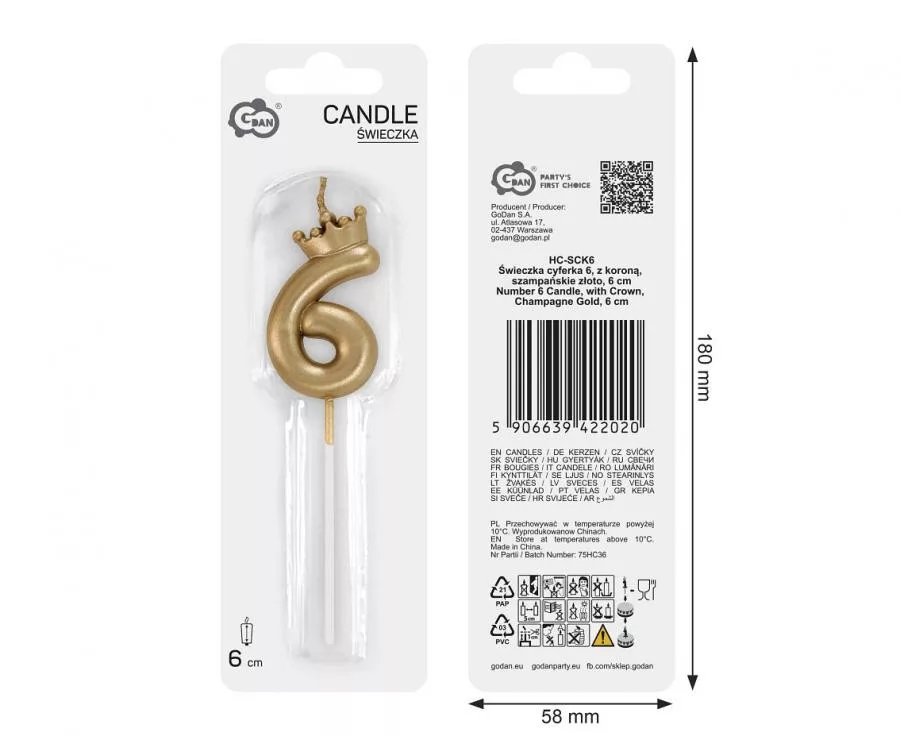 Number, Numere Auriu, lumânare cifra 6, lumânare aniversară