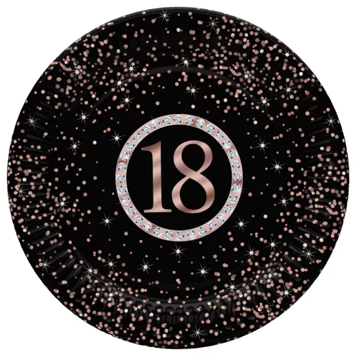 La mulți ani Rose Gold Farfurie din carton 'La mulți ani' 18, 8 buc, 22,7 cm