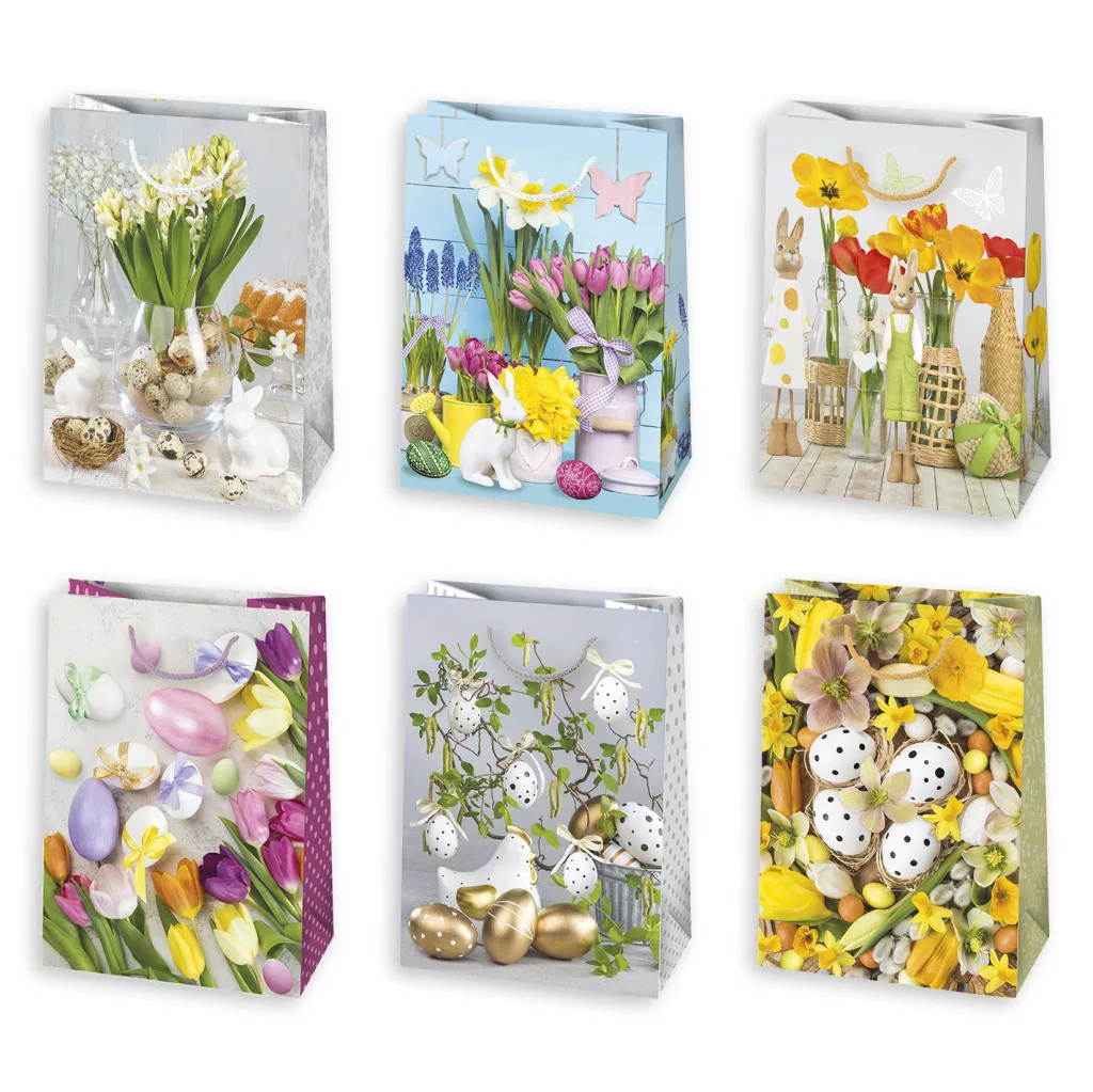 Paște Floral sac de cadou din hârtie, sac de cadou 23x32x11 cm