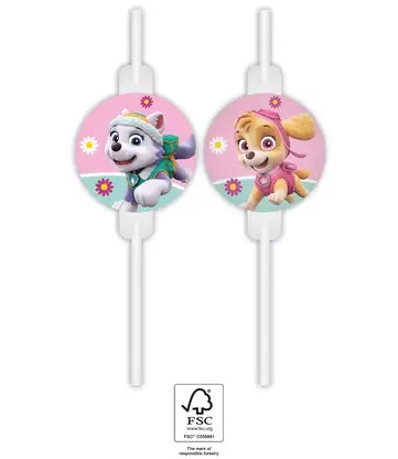 Patrula Cățelușilor Skye and Everest paie de hârtie, set de 4 bucăți FSC